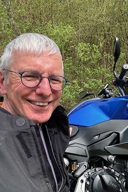 Peter bringt nicht nur graue Haare, sondern inzwischen auch einiges an Erfahrung mit auf die Tour. Wer ihn kennt, weiß: Sein Herz schlägt für kleine, möglichst gebirgige Straßen, die er am liebsten mit seiner BMW F900XR unter die Räder nimmt.